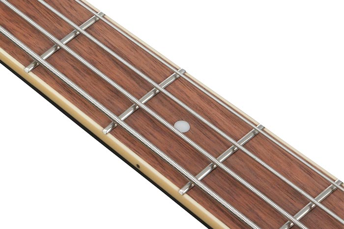 El mástil de 3 piezas Nyatoh/Maple ofrece estabilidad y una ejecución fluida, facilitando líneas de bajo precisas y cómodas en todo el diapasón.