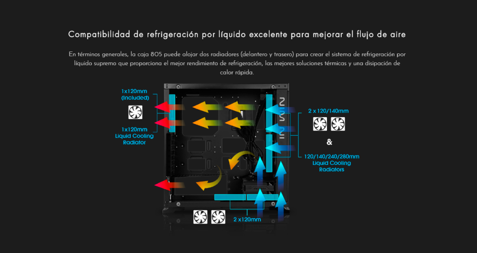 | Diámetro de ventiladores frontales soportados | 120,140 mm |