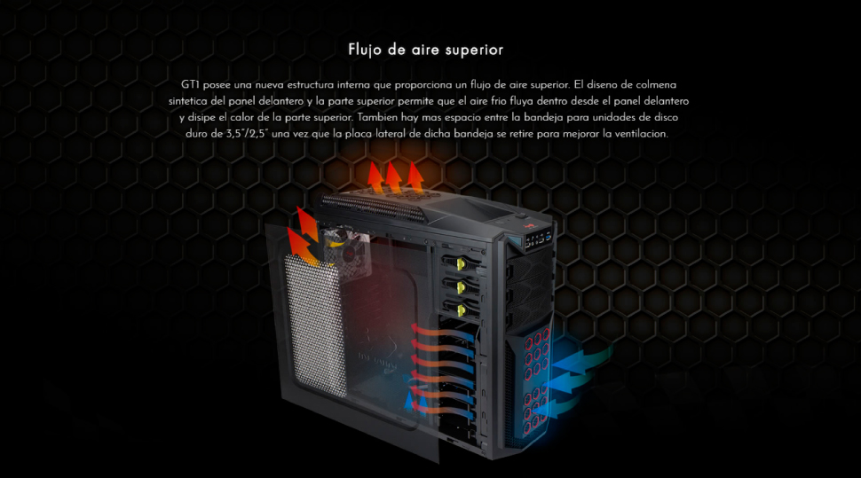 | Diámetro de ventiladores frontales soportados | 120 mm |
