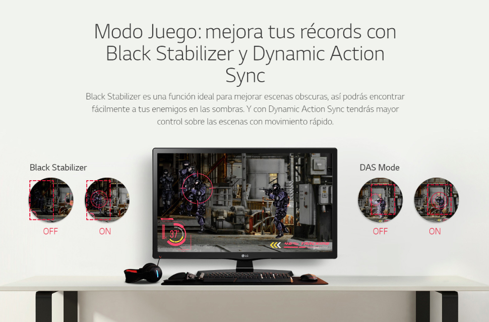 Black Stabilizer es una función ideal para mejorar escenas obscuras, así podrás encontrar fácilmente a tus enemigos en las sombras. Y con Dynamic Action Sync tendrás mayor control sobre las escenas con movimiento rápido.