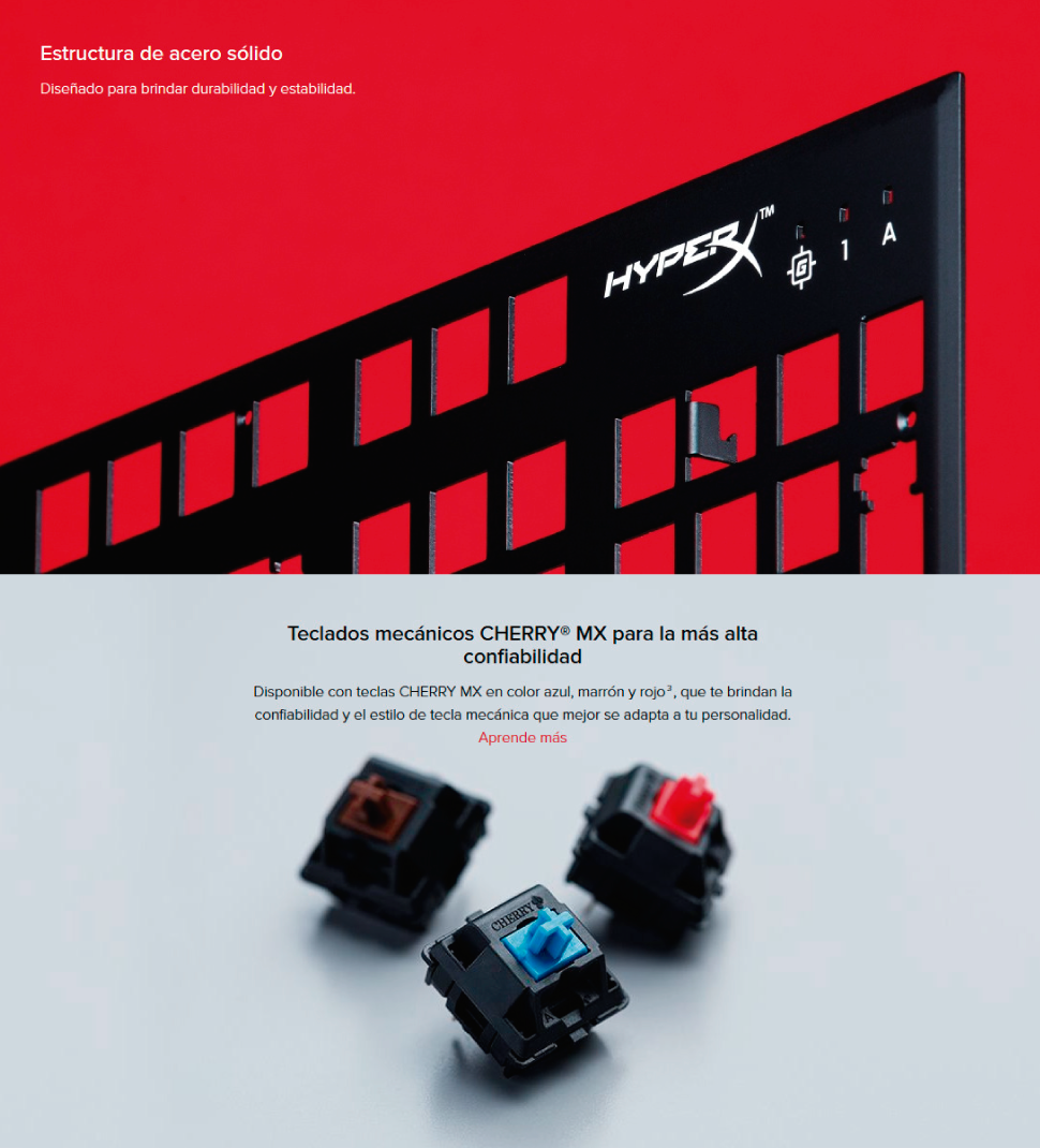 - Teclas retroiluminadas en rojo HyperX con efectos de luz dinámicos