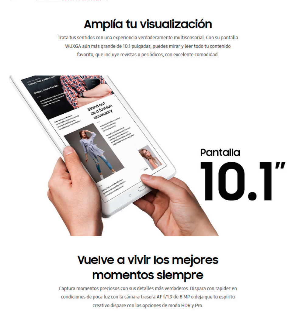 Tablet Samsung Galaxy Tab A 10.1" LTE, camara 8MP, Octa-Core 1.6GHz, Ram 3GB, Color Gris