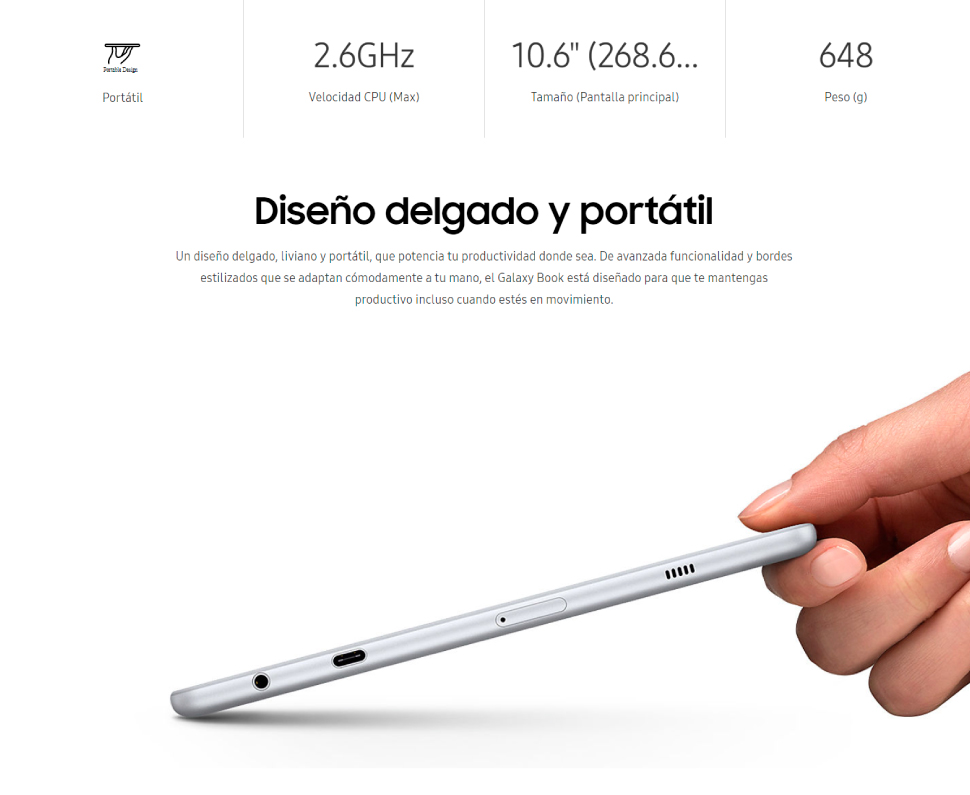 Tablet Samsung Galaxy Book, 10,6", WiFi, Negro, Dual-Core 2.6GHz, Ram 4GB