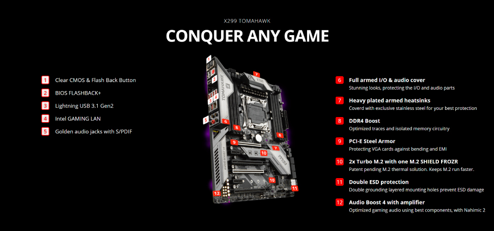| Velocidades de reloj de memoria soportadas | 2133,2400,2667,2800,2933,3000,3200,3333,3400,3466,3600,3733,3800,3866,4000,4133,4200,4266,4400,4500 MHz |