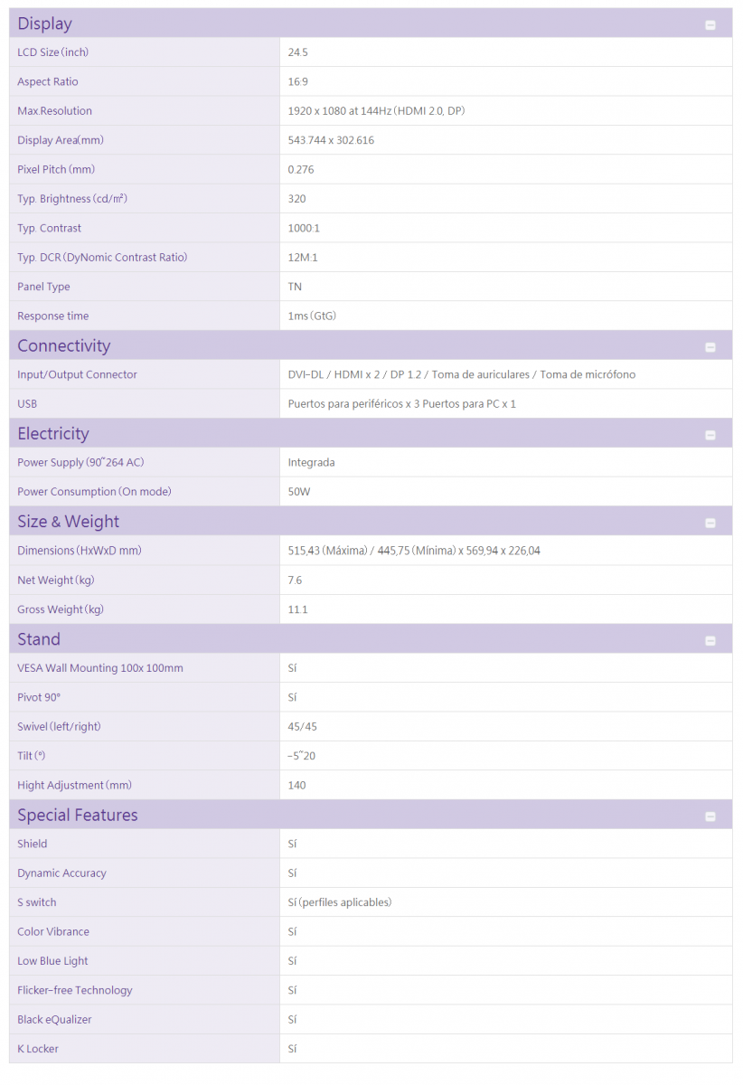 Todo juego tiene su configuración óptima. Hemos equipado todos los monitores de la serie XL con diferentes configuraciones. Puedes pasar fácilmente a estos modos de juego con solo tocar una tecla de acceso directo.