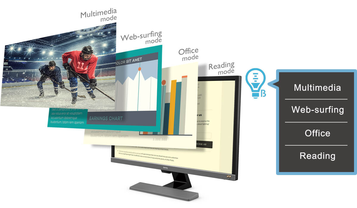 La tecnología Low Blue Light está pensada para filtrar la luz azul nociva, lo que disminuye eficazmente la fatiga y la irritación oculares. Es fácil cambiar a uno de los cuatro modos predefinidos de baja luz azul con la tecla de acceso directo del OSD (multimedia, navegación web, oficina y lectura) y cuidar la vista sin sacrificar el disfrute visual.