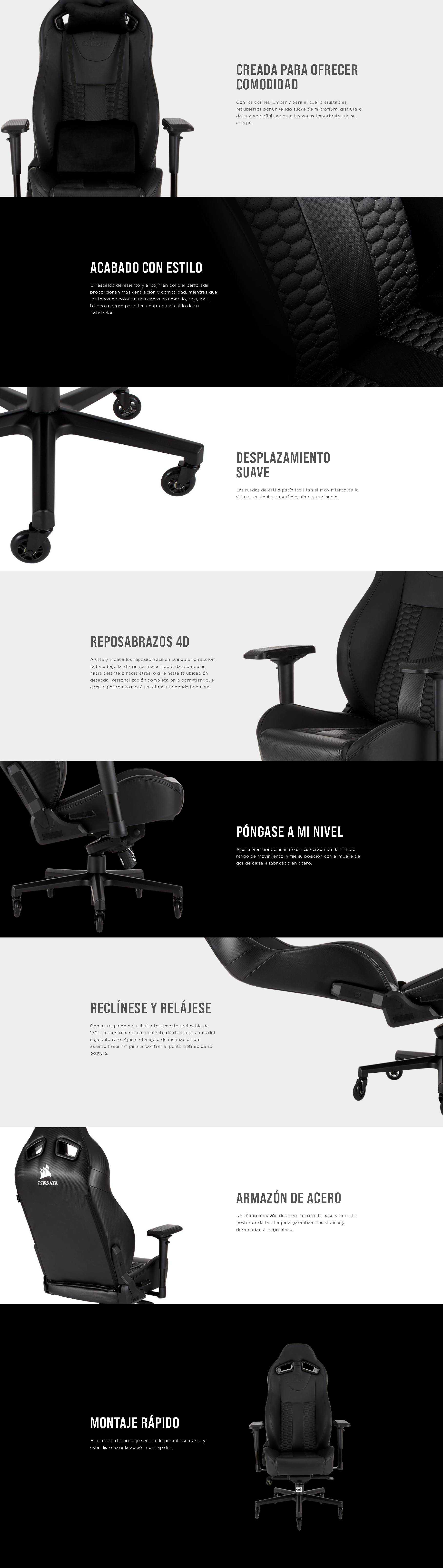 SEGUNDA SELECCION ARMADA Silla Profesional Corsair T2 Road Warrior, Respaldo Alto, 136Kg, Negro